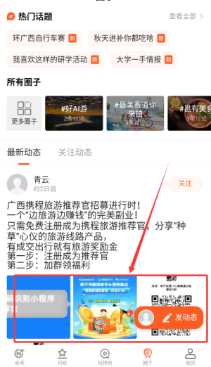 1、手机安装南宁云App后完成注册登录,填写个人资料,系统将根据你的偏好推荐感兴趣的内容。