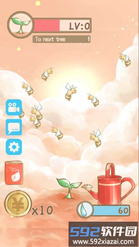 这是一款带着文艺气息的放置小游戏,核心就是照料你的小树。记得经常为树苗浇水,帮助它慢慢长大。当有小蜜蜂绕着树飞的时候,就能收集到闪闪的金币啦。用这些金币换来的新道具,会让你的小树生长得更加健康可爱。