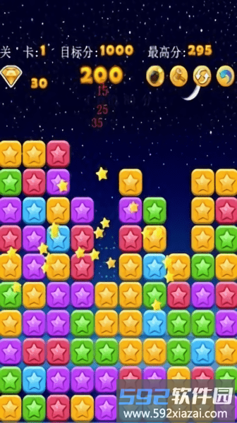 3.轻点两个或更多同色星星方块,就能让它们消失。