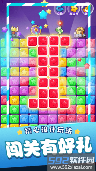 这款经典消除游戏融合了视觉艺术与趣味机制。玩家需要找出颜色相连的星群进行消除。点击同色相邻区域即可完成操作,全程无时间压迫感。每关设有明确目标,达成后立即进入新阶段。连续消除将累积惊喜分数,创造独特解压节奏。