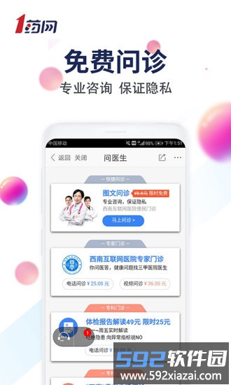5、名医在线问诊:依托互联网医院资质,邀请三甲医院专家提供电话及视频问诊服务,支持电子处方开具。