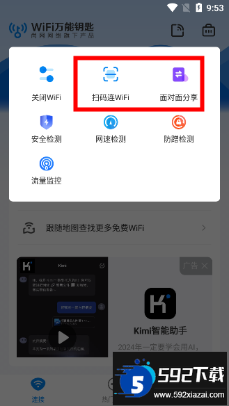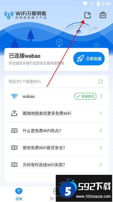 1、打开wifi速联钥匙应用,进入主操作界面