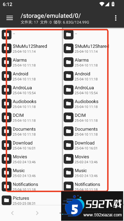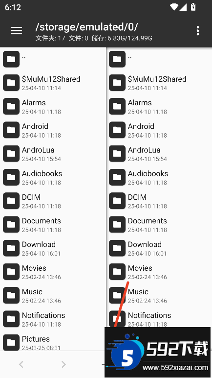 2、进入主界面后可以看到左右并排的两个文件列表窗口,方便进行文件对比和管理。