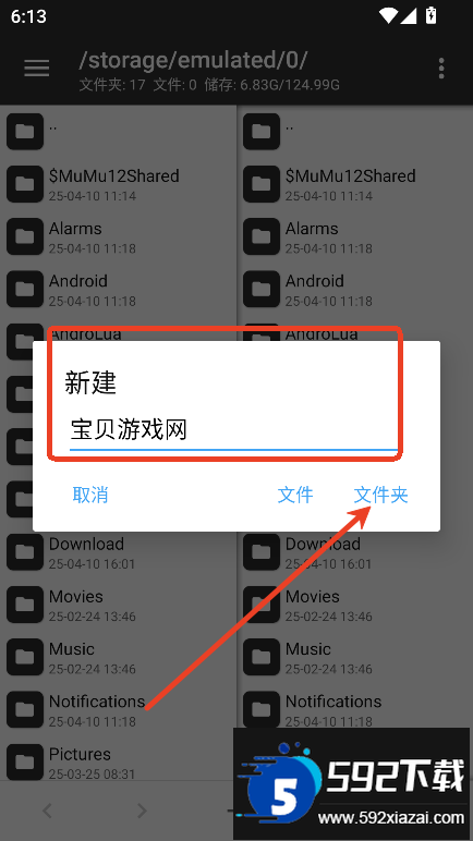 4、输入文件名称后,选择需要创建的是文件还是文件夹类型。