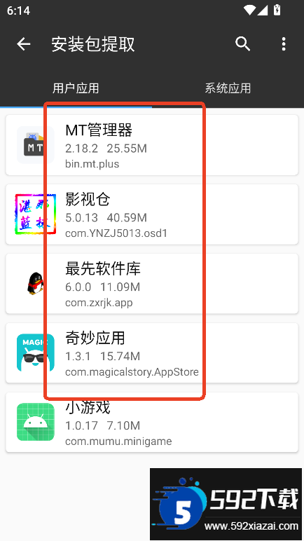 7、例如选择安装包提取功能,进入后可以选择需要提取apk文件的应用。