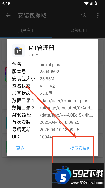 8、选定应用后点击提取安装包按钮即可完成操作。
