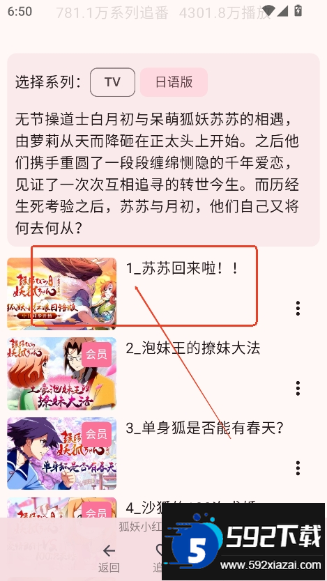 4. 在搜索结果中挑选喜欢的番剧进入详情页;