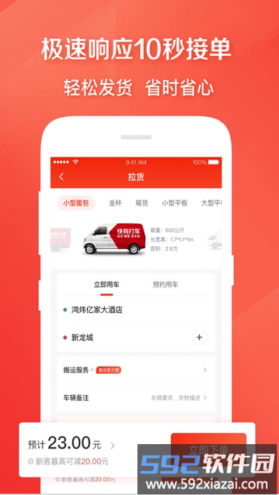 打开APP就能随时呼叫附近的专业货车司机与搬家师傅,最低33元起轻松发货。
