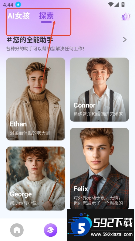 2、也可点击探索板块,从中挑选感兴趣的角色;