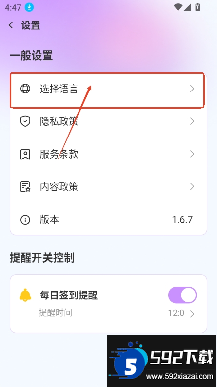 2、在设置中选择语言选项;
