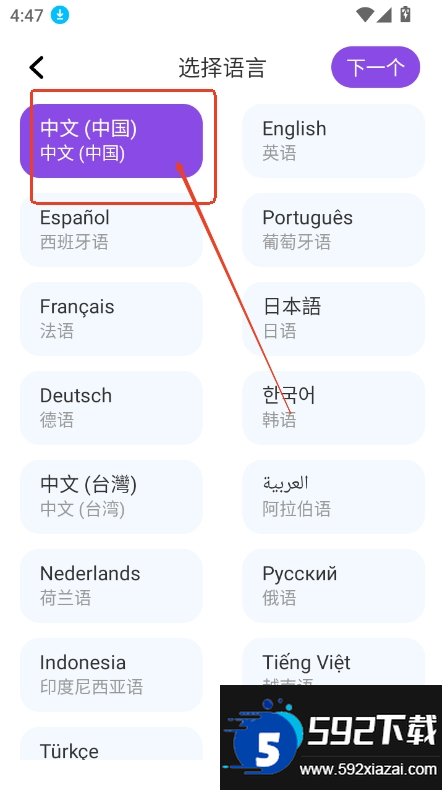 3、勾选所需语言,点击下一步完成设置;