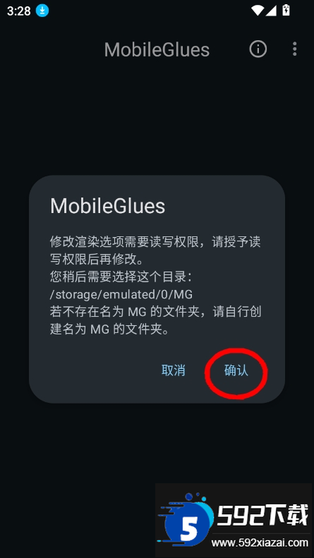 1. 在本站戏网下载并安装mg渲染器安卓版,点击确认进入应用;
