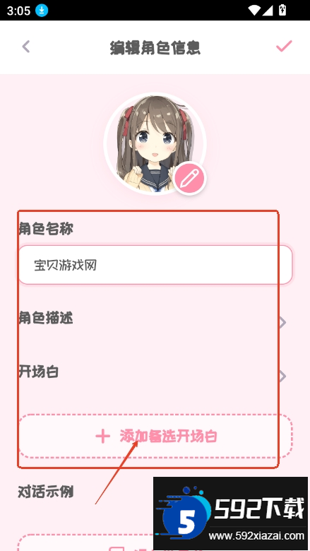 3、填写昵称、角色形象、故事背景以及开场白等内容;