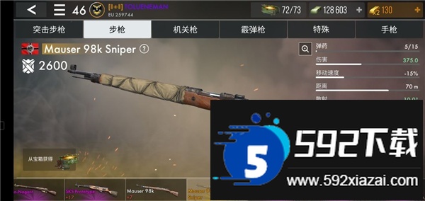 裹布98k是一把黄金购买的狙击步枪,射程70米,满级伤害520。搭配狙击手护甲50%伤害与20%射程加成,在大地图中极具威胁,两枪即可击倒高护甲目标。