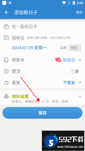 3.所有信息确认无误后,点击页面顶部的保存按钮,即可完成倒数日的设置;
