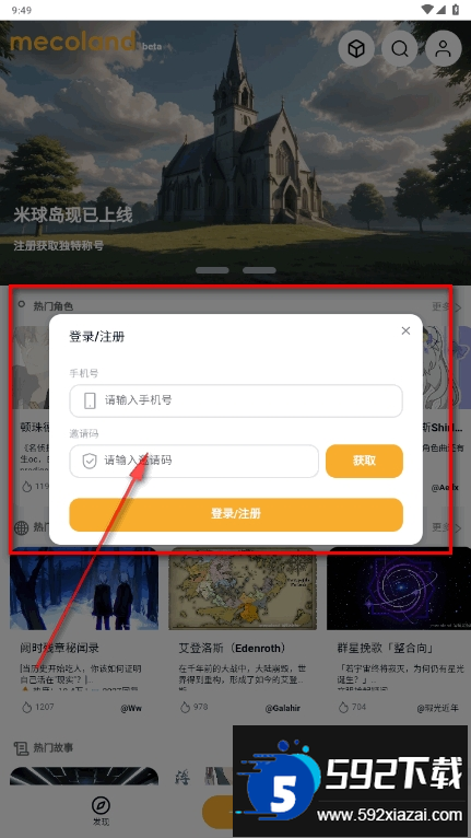 2.输入手机号及验证码完成登录。