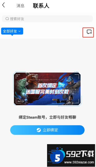 2. 点击立即绑定steam账号,绑定后会自动显示好友列表,若未显示可点击添加按钮;