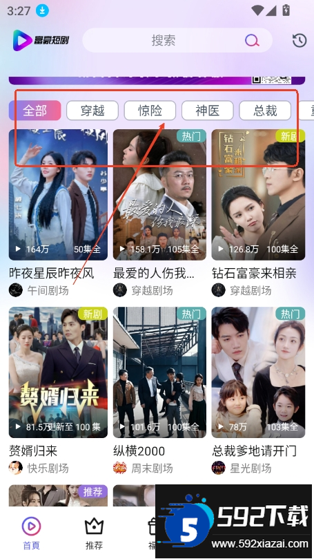 1、打开软件进入首页,可以通过分类标签筛选喜欢的题材类型;