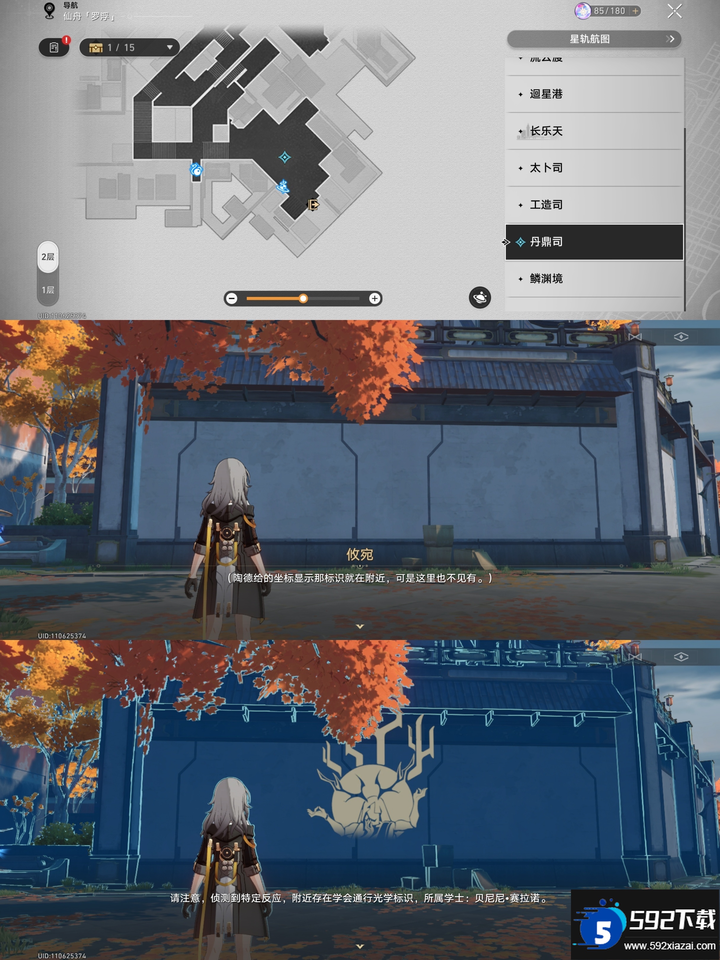 前往丹鼎司识别三处标识,建议选用矮个子角色如银狼或白露。