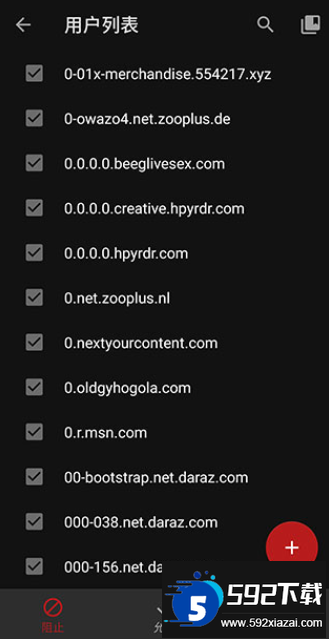 点击左上角的阻止按钮,可以查看当前已被拦截的广告来源列表。