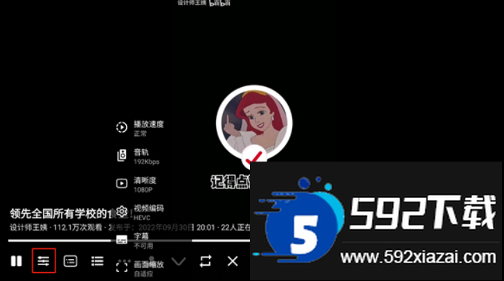 3、进入设置菜单,可自定义视频播放速率、清晰度选择与画面比例缩放;