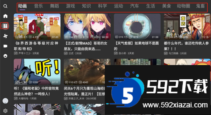 5、通过分类入口可浏览动画、音乐、舞蹈、游戏、知识、科技等分区内容;