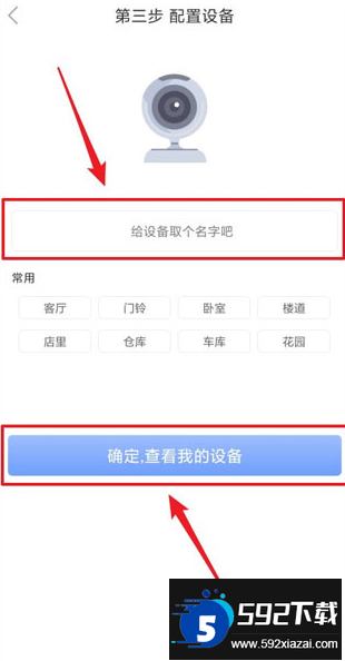 在第三步配置设备页面,为设备设置一个名称,然后点击“确定,查看我的设备”按钮。
