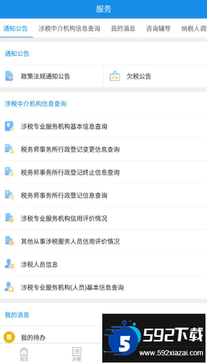 公众服务:集成查询、权益保护、预约办税及通知公告等公共服务;