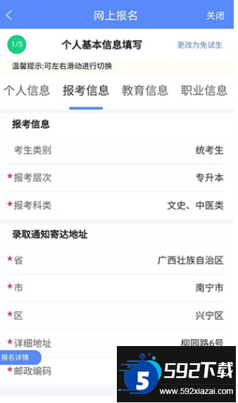 广西成考app报完名后怎么查看信息: