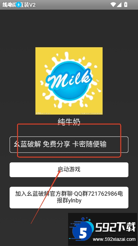 2. 进入首页后,在卡密输入栏任意填写,点击启动游戏按钮。
