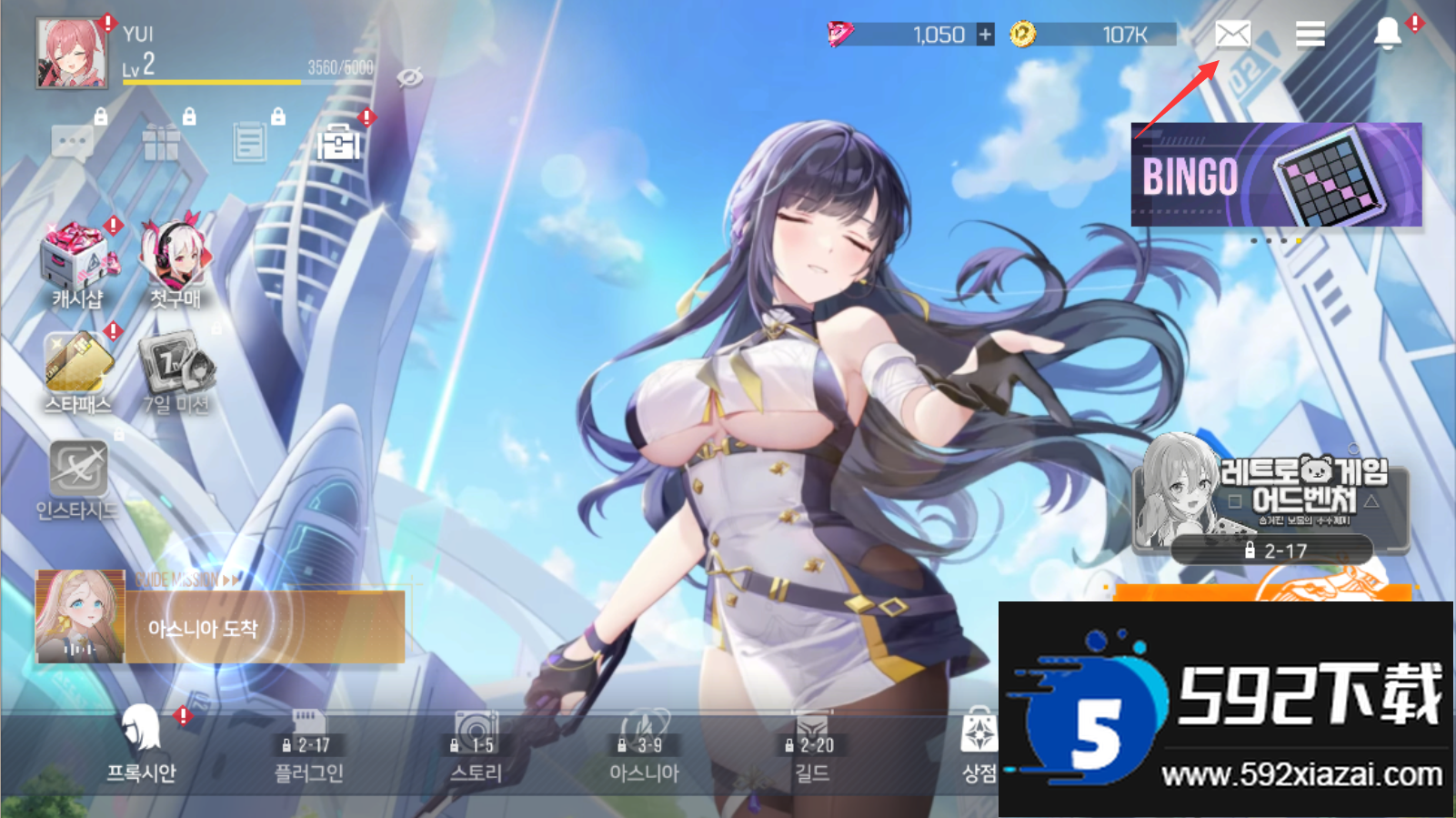 2.跟随指引推进主线,通关1-4后即可解锁邮箱与抽卡功能。