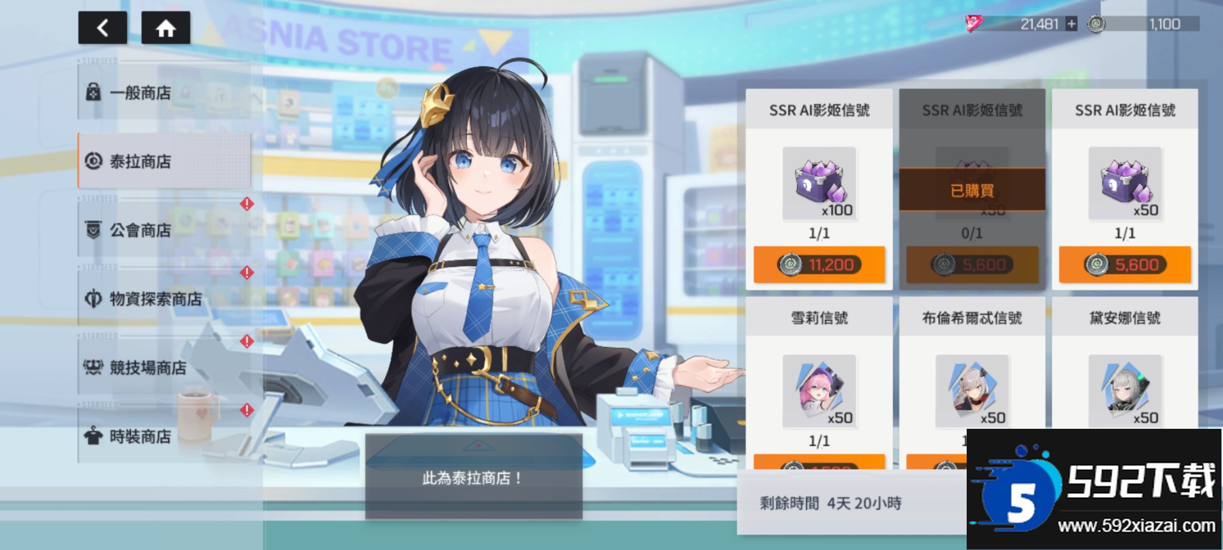 长期购买第二个紫色碎片;若出现套装变更工具则优先兑换。该商店每月重置,余额可购买角色养成素材。