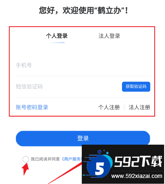 1、打开鹤立办APP,根据提示完成注册。用户可选择手机号或身份证号等方式注册,填写信息并设置密码;若已有政务账号,也可直接登录。