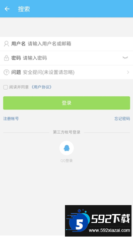 已有账号可直接输入用户名与密码登录;若无账号,点击注册账号进行创建;通过忘记密码功能可找回密码,也支持使用QQ一键快捷登录。