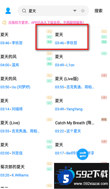 搜索:界面简洁,在搜索栏输入音乐名称或歌手名,就能找到目标音乐。