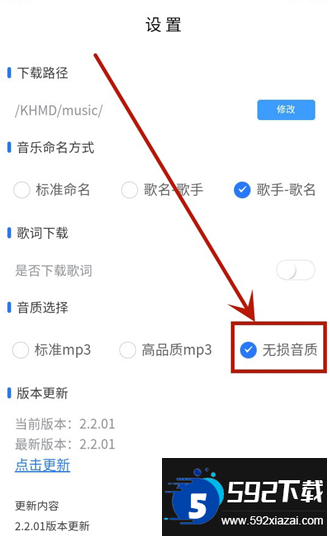 选择无损音质,之后下载的歌曲便会自动保存为高品质音乐文件。