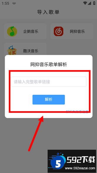 输入完整的歌单链接,点击解析即可完成导入。