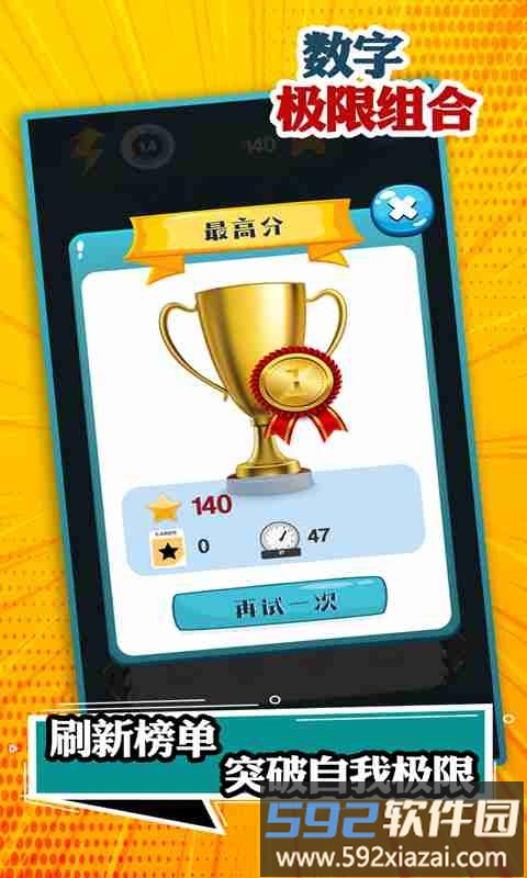 数字极限组合融合了消除与合成的玩法,设有三种难度供玩家挑战。你可以自由尝试,逐步锻炼思维能力,从简单模式开始,一步步向高难度发起冲击。