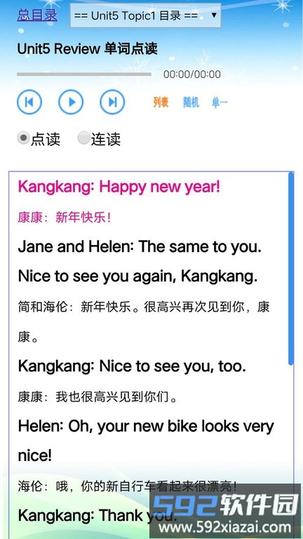 2.提供单句精听、全文连播、随机抽查等多种听力模式