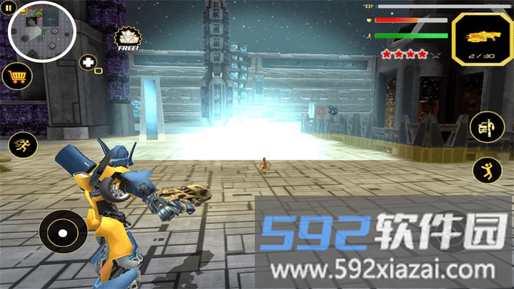 3.穿梭于摩天楼宇间,逐个击破入侵者,用战绩解锁更强大的守护机甲