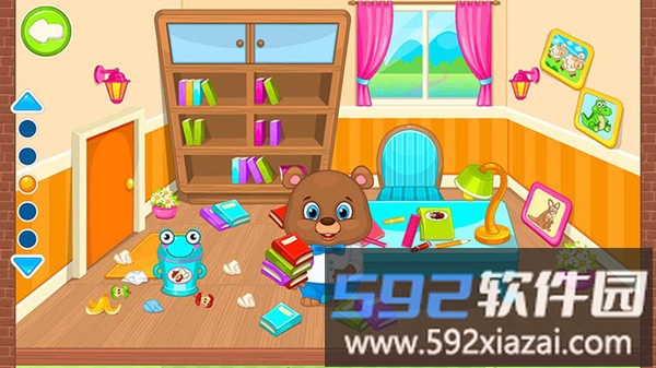 2.游戏室清洁任务:擦亮玻璃窗,归位散落玩具,整理鞋柜摆放,收拾桌面杂物;
