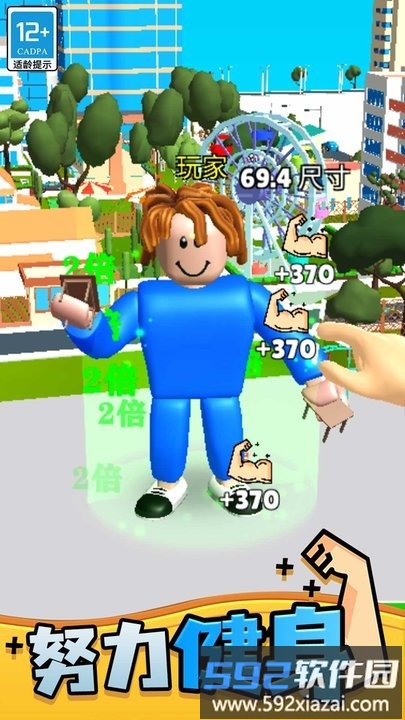 这款健身主题手游带来独特的运动模拟乐趣。游戏采用萌系卡通画风,玩家将亲历从竹竿身材到肌肉猛男的蜕变之旅。丰富的健身器械任君挑选,所有设备都能免费使用,助你快速提升角色体能数据。想要体验增肌快感的伙伴们千万别错过!