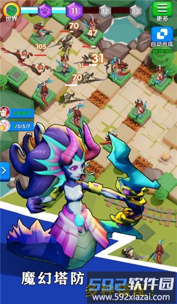 这款手游巧妙融合了合成机制与挂机玩法,创造出独特的策略塔防体验。数十种作战单位各具特色,搭配羁绊系统能激活隐藏属性。战斗过程中装备自动掉落,系统会智能筛选并替换低级装备,真正实现单手畅玩。