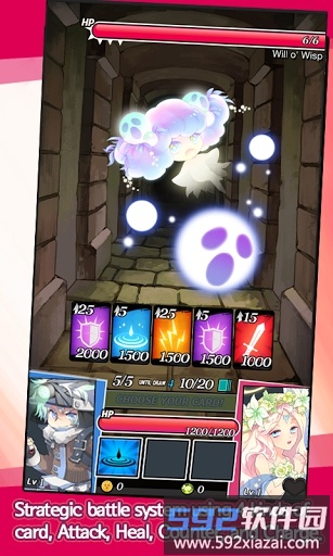 -卡牌战斗体系包含攻击/治疗/反击/蓄能四种战术选择