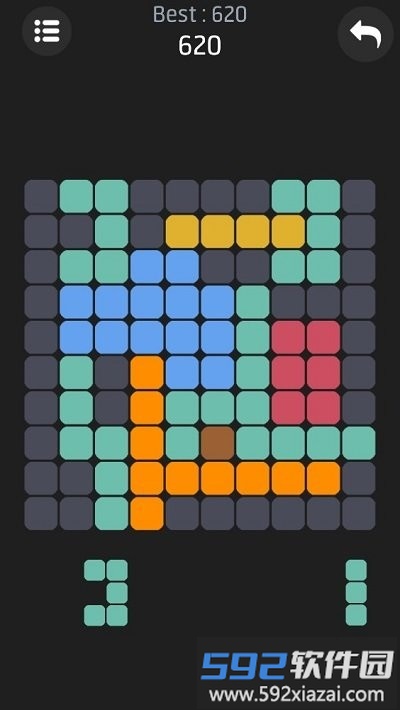 2、屏幕中央排列着各色方块,将颜色相同的方块移动组合,就能成功完成消除