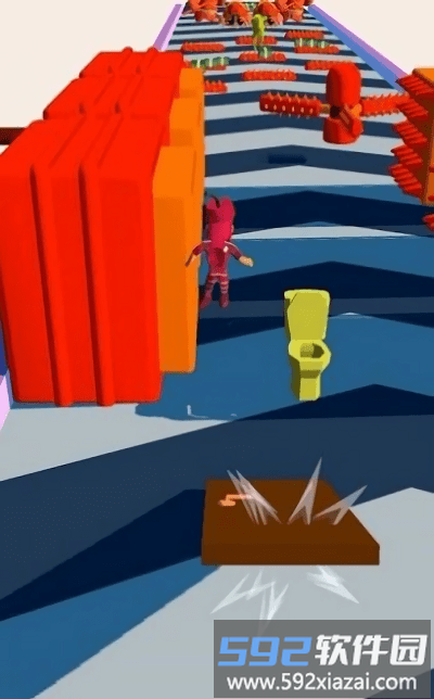1、游戏采用色彩鲜明的卡通画风,玩家将操控角色在充满趣味的赛道上展开跑酷冒险。