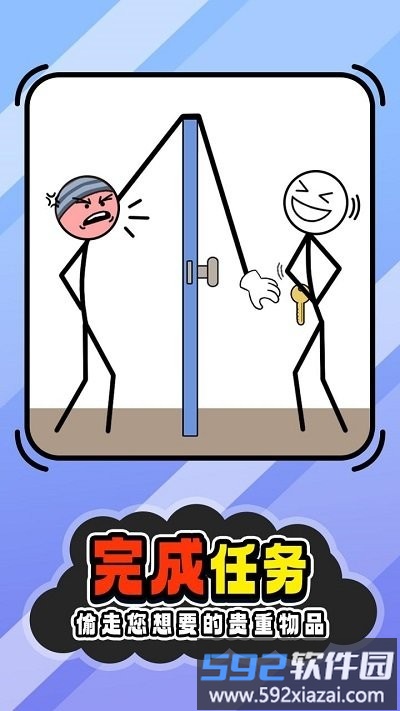 小偷秘籍拿下下一关移动端是一款考验脑力的火柴人主题解谜游戏,玩家需灵活思考突破层层机关,在简洁明亮的场景中完成指定任务。游戏操作简单却充满意想不到的转折,魔性玩法配合情境提示带来持续新鲜感,适合随时开启脑力激荡,等待敢于接受挑战的你!