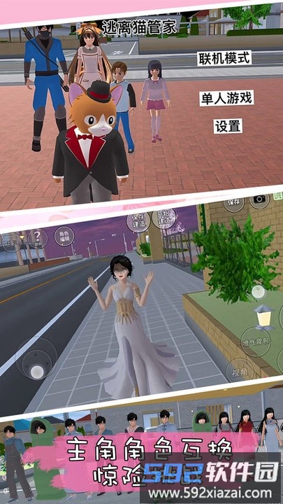 3、精致校园景致中可随时切换不同风格的动漫形象