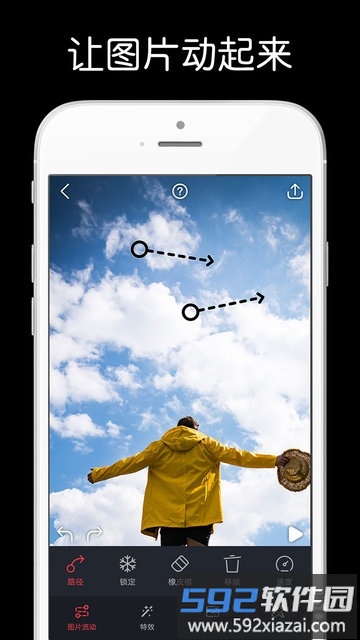 想让照片里的云朵飘动、让水面泛起波纹吗?这款图片动态编辑工具能帮你实现创意。只需在屏幕上划出轨迹,静态画面中的元素就会按你的指令活动起来。软件内置丰富的动画效果与专业调色工具,即使是修图新手也能快速掌握。