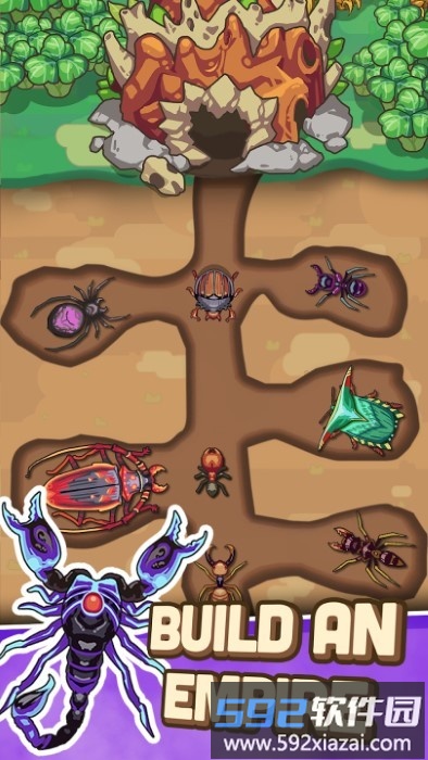 当资源不断累积,便可强化巢穴结构,激活新型虫族。壮大工蚁军团规模,培育甲虫将领统御三军。